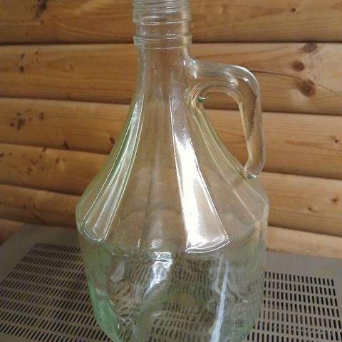 2 lasipulloa, joissa kierrekorkki. Tilavuus 75 cl. Korkeus n. 25 cm. Hinta on molemmille pulloille.