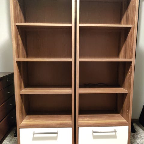 Useita varastohyllyjä (hyllylevyt + vaatetanko)