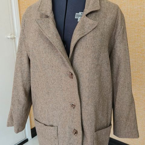 Linjakas italialainen bleiseri, jonka materiaali on 54 % polyesteriä, 44 % villaa ja 2 % elastaania. Merkki on Lisa Campion. Takissa on myös joustavaa trikoota, jossa on 72 % polyesteria, 24 % viskooosia ja 4 % elastaania. Materiaalin ansiosta takissa on jokin verran joustoa. Trikoo-osa on hivenen nyppyyntynyt. Väri on laivastonsininen ja ruutukangas on sininen, siniharmaa, punainen ja keltainen. Edessä kaksi taskua, joissa nappikiinnitys. Hihassa kuvanmukainen kangasmerkki, jonka keskellä timanttijäljitelmä. Takki pestään 30 asteessa.