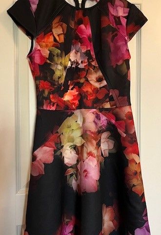 Kukkamekko pitkillä hihoilla. Käytetty kerrran juhlissa.