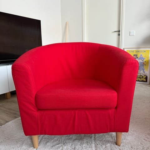 Ikea Tullsta nojatuoli. Kunto hyvä, mutta kangas pesun tarpeessa.