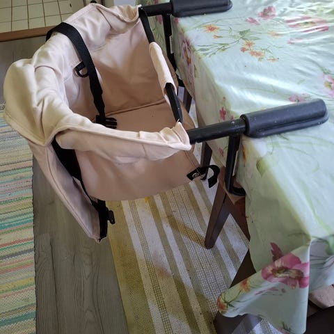 Pöytään kiinnitettävä syöttöistuin.