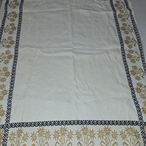 Siistikuntoinen pöytäliina . puuvillakangas. Leveys 86cm ja pituus 86cm.