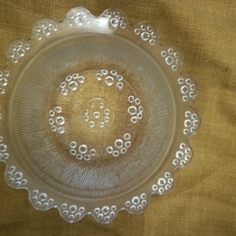 Kulho, jonka korkeus noin 9cm ja halkaisija noin 24cm. Jälkiruokakulhojen (6kpl) korkeus noin 5,6cm ja halkaisija noin 10cm.