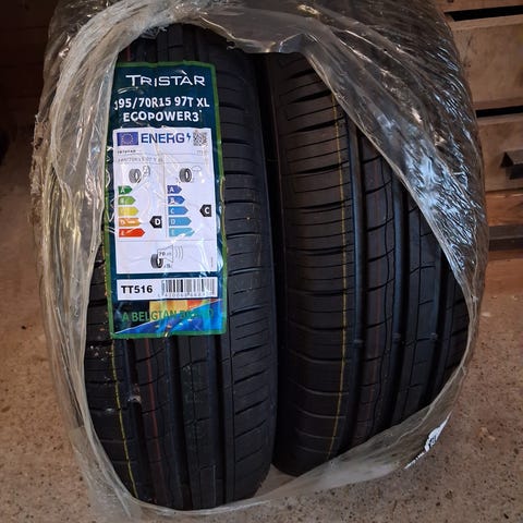 Juuri ja juuri auton alla käyneet, eli lähes uudet renkaat.