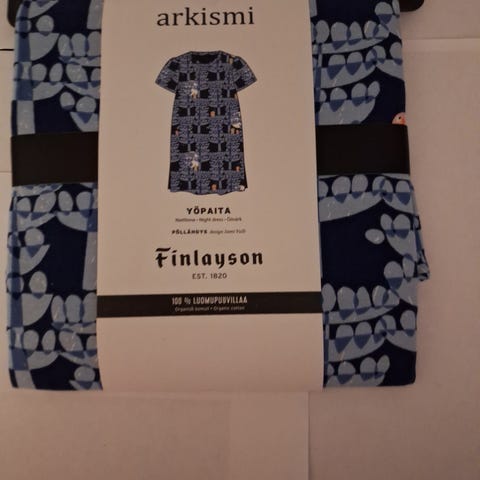 Myydään Finlaysonin 100 % luomupuuvillainen lasten yöpaita 100cm. Nouto Kirkkonummelta tai erikseen sovittaessa arkisin Pasilasta (Tripla).