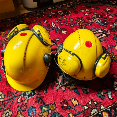 Suojakypärä käytetty siisti. Sisältää kuulosuojaimet ja suojalasit. Suojalasit hyvässä kunnossa