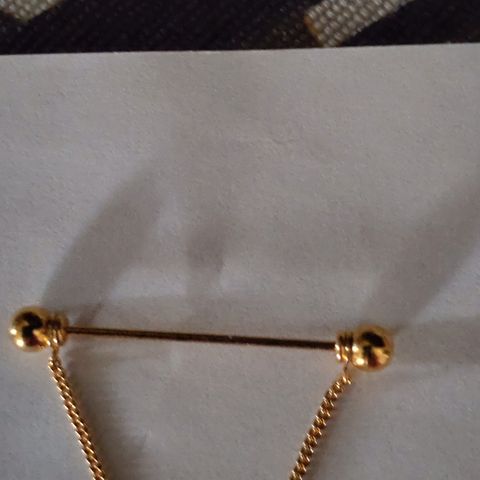 Vanha miesten solmioneula / kravattineula. Kullanvärinen, hopeisen värisellä koristeella. En löydä leimoja. Pientä käytön jälkeä. Jämäkkä kiinnitys. Pituus 6,5 cm.