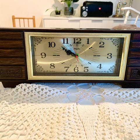 Kello on puuta mutta koristeosat, kuten hevonen muovia. Heiluri käy ja sointi kaunista. Toimii patterilla vaatii vedon sijaan patterin joten kello on helppohoitoinen.