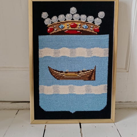 Keraaminen Uusimaa vaakuna seinäkiinnityksellä. Korkeus on 26 cm ja leveys 26 cm.