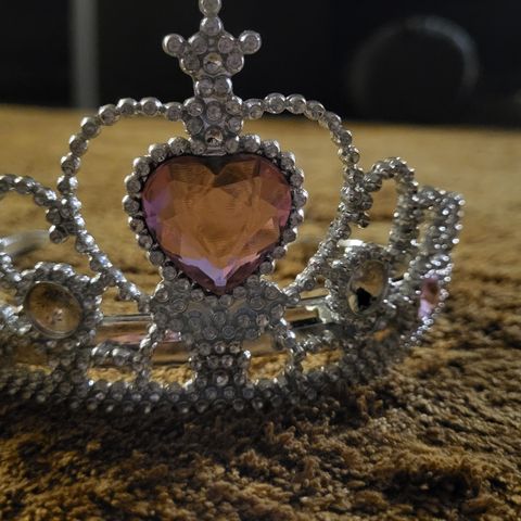 Todella hieno prinsessan tiara lapselle leikkeihin ja miksi myös juhliin. Kirkas hopea jossa kolme suurta ”timanttia” yksi punainen ja kaksi keltaista. Leveys sankojen päästä 10cm mutta venyy 16 cm ja pysyy päässä hyvin paikoillaan. Voin toimittaa toimituskuluja vastaan