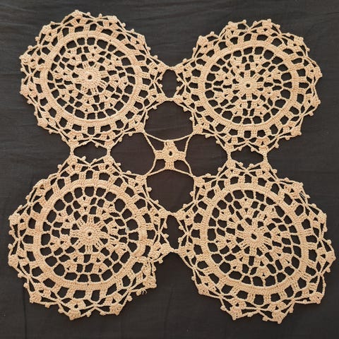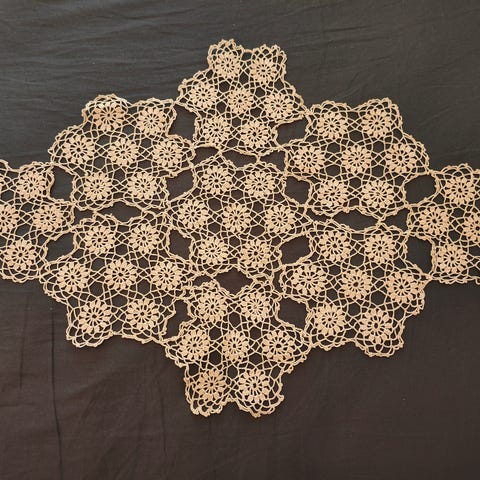 Pitsiliina puuvillalangasta, luonnonvalkoinen. Koko 63x21cm