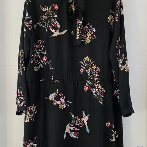 Only Curve -merkkinen ihastuttava, kaunis, hulmuava ja pitkähelmainen mekko, jossa on alla musta spagettiolkaiminen alushame ja irrotettava mekkokankainen vyö. Kaula-aukko on pyöreä, niskassa pieni nappi. Ihana päällä!