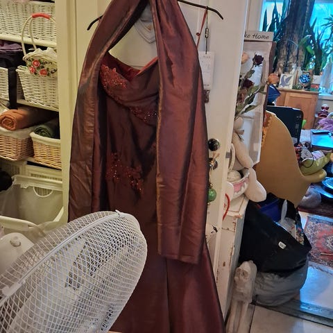 Upea , uudenveroinen mekko. Kokonaan vuoritettu, ei vetoketjua. Kangas venyy hieman. Vajaamittaiset hihat ( kaunis ketju koristeena). Materiaali : polyesteri ja elastinen sekoitus. Ei vaadi silitystä.