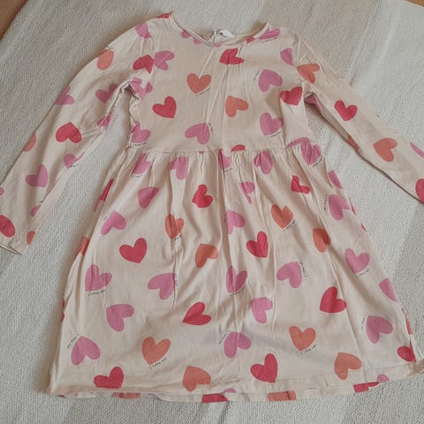 Käytetty koossa 122-128. Edessä haalea jälki, joka ei lähteyt pesussa, mutta tuskin erottuu. Huomioitu hinnassa. Laadukas kotimainen mekko.