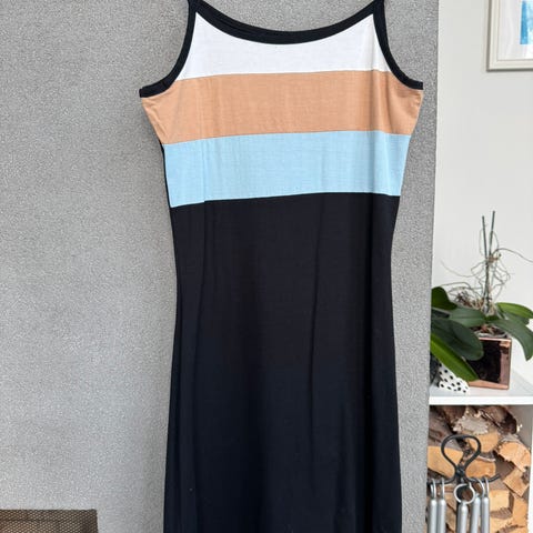 Kitinvärinen joustava trikoomekko, jossa vähän erikoisempi malli. Riani-merkkinen, Muotikuusta ostettu. Taskut, syvä kaula-aukko, ns. lepakkohiha, helma kapeneva. Koko 36. Erinomainen kunto.