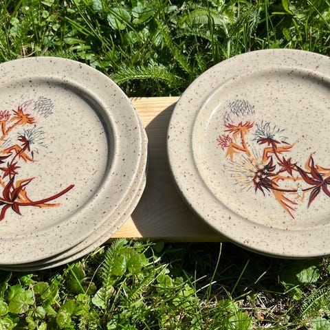 Pienempiä lautasia 4kpl, isompia 6kpl. Kuppeja 6kpl. Kaikki siistejä.