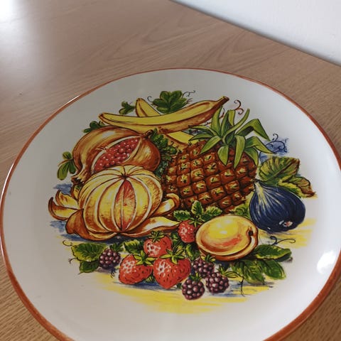 Myydään sininen lehdenmuotoinen hedelmälautanen yms.