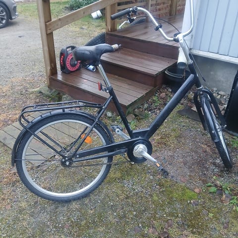Poikien Kulkuripoika 3-vaihteinen polkupyörä. Vaihdettu uudet Continental-renkaat, jalka puuttuu, satulan pinnassa pieni reikä. Ketjuissa ruostetta.Yleisilme hyväkuntoinen.Renkaan koko 24 tuumaa.