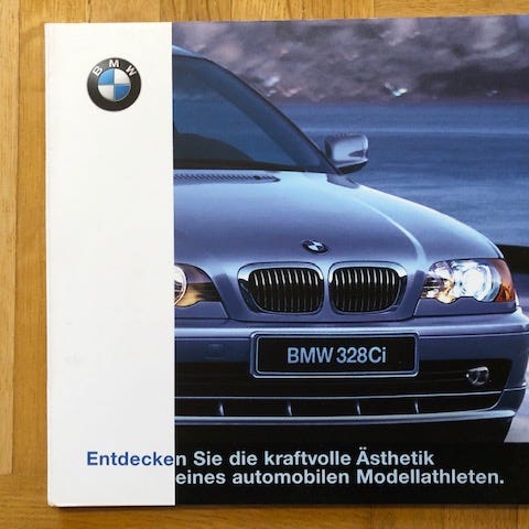 Esite BMW E46 3-sarja vuodelta 2000: 316i, 318i, 320i, 320d, 330i, 323Ci, 330Ci