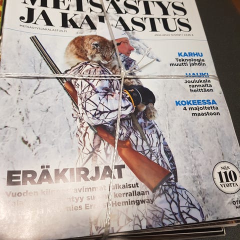 Kirjoja, aiheena metsästys, kalastus ja luonto