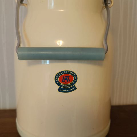 50-60 luvun maito hinkki emali pinnotteinen, pohjassa ajan patinaa ja hinkin suulla ajan patinaa,turkoosi kantta ei ole.
