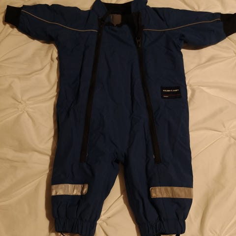 Popin ihana talvihaalari vauvalle kiinteillä tossuilla ja tumpuilla. Sisältä pehmoista teddykangasta. Lapaset saa tarvittaessa siirrettyä pois käden päältä. Muhkea ja lämmin. Kunnossa ei moitetta, käytetty vain vaunuissa.