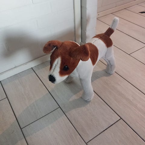 Sininen pehmeä koira lelu, korkeus n.30 cm