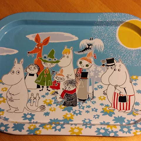 Muurlan valmistama pieni muumi tarjotin "sunny". Kuvitus kirjasta kuinkas sitten kävikään. koko 27x20cm ja materiaali koivuvaneria joka voidaan pestä astianpesukoneessa.