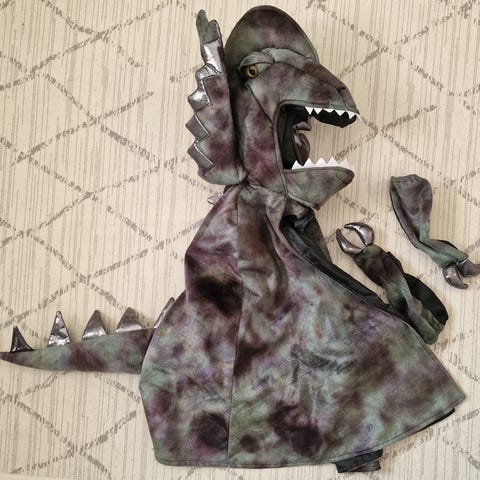 Dinosaurus naamiaisasu viitta ja dino säilytys reppu