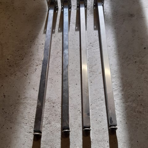 Kirjoituspöydän-/työtason retro/antiikkiset pöydän jalat, korkeus 46 cm. Samaan hintaan sisältyy koko pöytä/työtaso laatikoineen, joka vaatii hieman kaasaamista/puhdetyötä.