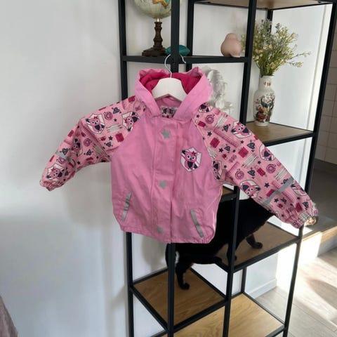 Uusi käyttämätön sadetakki. Lasten vuoritettu sadetakki. Söpöllä sydänkuviolla. Koko 86-92. Ihanan pehmeä vuorella, pitää varmasti lämpimänä sateella kevät päivisin.