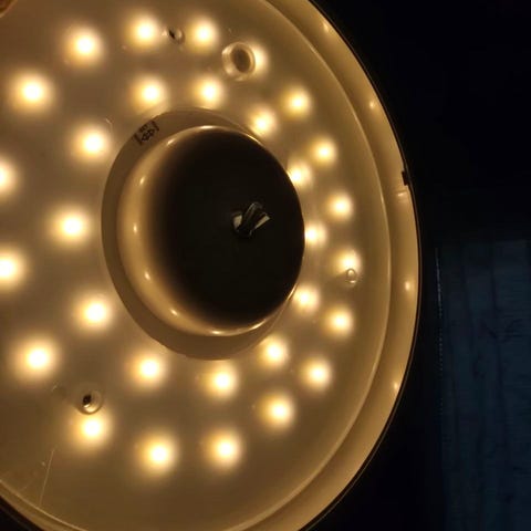 Myydään kuvan kattovalaisin. On ollut kylpyhuoneen katossa. Kiinnitys ruuveilla.