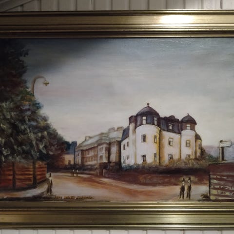 Eeva Lehmussaaren Tulikannel vuodelta 1988. Työn korkeus on 60 cm ja leveys 76 cm. Ei kehyksiä.