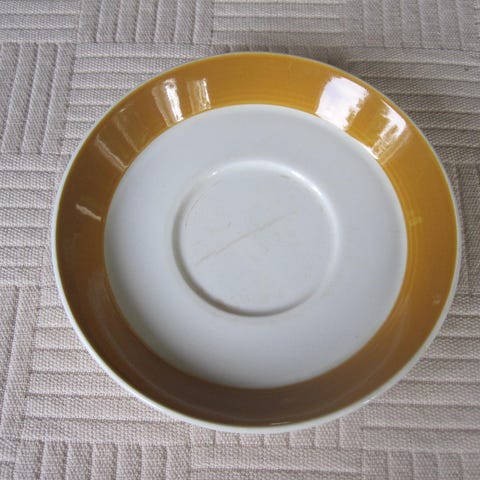 Ikäisekseen hyväkuntoinen, 1 pieni nirhauma reunassa, siitä erillinen kuva, alapuolella pientä iän tuomaa jälkeä.