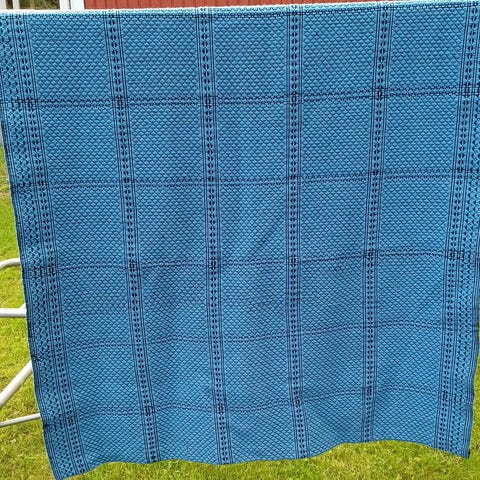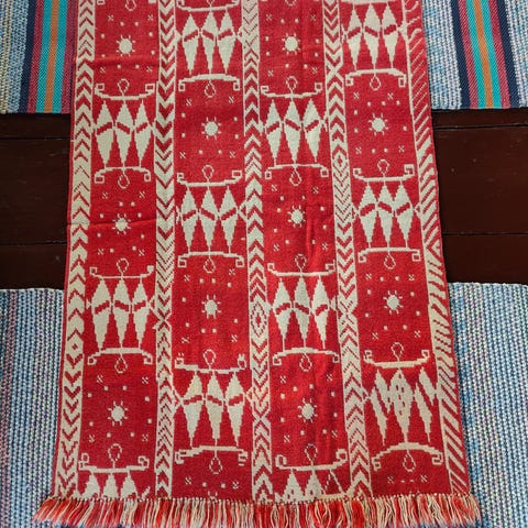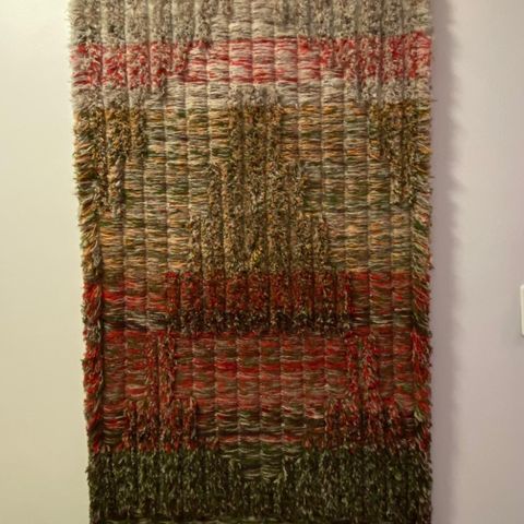 Vanhoilla pistotyyleillä käsin tehty seinävaate/rekipeitto. Materiaalit suomalaista villaa.