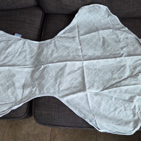 Kushies pehmeä kapalo hupulla. Sopii 0-4 kuukauden ikään. Nukke kuvassa ei myynnissä, on vain mallina miltä kapalo näyttää käytössä. Muotonsa ansiosta vauva on helppo kapaloida. Ehjä, pientä Pesunukkaa pinnassa.