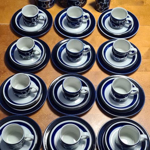 Sijainti Järvenpää keskusta. Vain nouto. Hakusanat retro vintage Arabia Saara lautanen lautaset kahvikupit kahvikuppi asetti astiasto astiat keräily irtaimisto irtaimistot suomidesign finnishdesign desinkki arvoesineet suomalainen