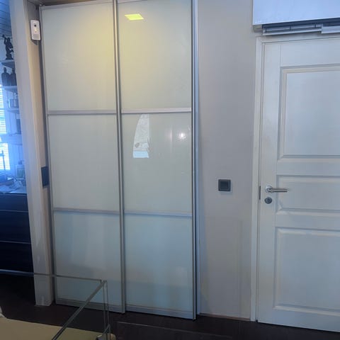 Myydään 2kpl alumiinirunkoista liukuovea,pähkinän väriset,hyväkuntoiset,mukaan ala ja yläkisko,oven mitat leveys 1340mm korkeus 2450mm.kiskojen pituus 2650mm,ovissa säädöt.vain nouto