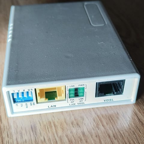 Paras mahdollinen puhelinpistokkeeseen tuleva VDSL2 modeemi. Erittäin vakaa eikä mitään ongelmia ollut. Ostettu 4 vuotta sitten verkkokauppa.comista. Takana oleva tarra lähtenyt irti (lähti kun otin modeemia irti seinästä joka oli kaksipuoleisella teipillä kiinnitetty). Lähetän tarran irtonaisena paketin mukana. Käytännössä tuote on kuin uusi, irronnutta tarraa lukuunottamatta (siksi kunto merkattu hyväksi). Ollut ilmastoidussa paikassa, ei pinottu reitittimien tai kytkimen päälle.