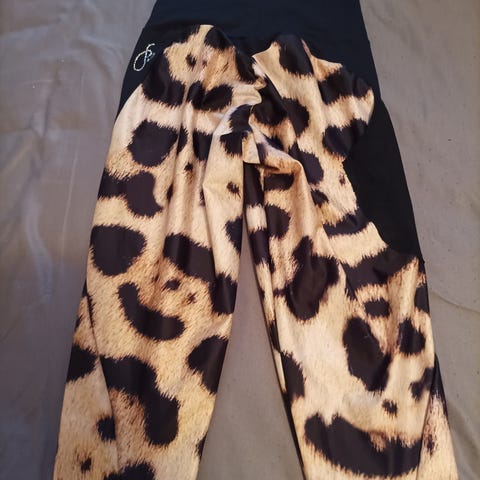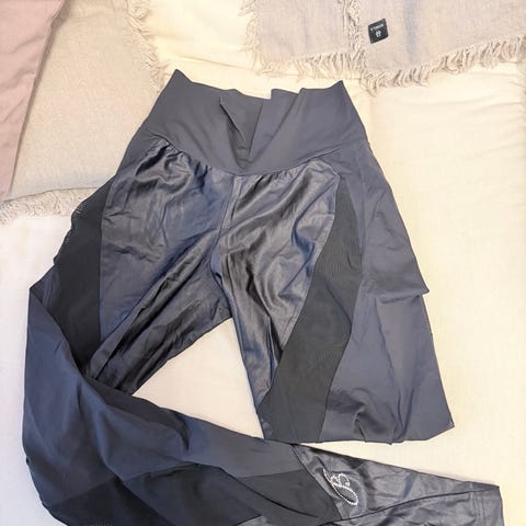 Sopivat hyvin treenin lisäksi myös vapaa-aikaan. Ihana liukas ja viileä materiaali. Hyväkuntoiset, pari strassia lähtenyt vaan logosta irti. (Näkyy kuvassa.)