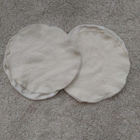 Uusia itseommeltuja merinovillaisia rinnanlämmittimiä, halkaisija 16-17cm.