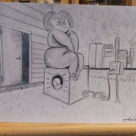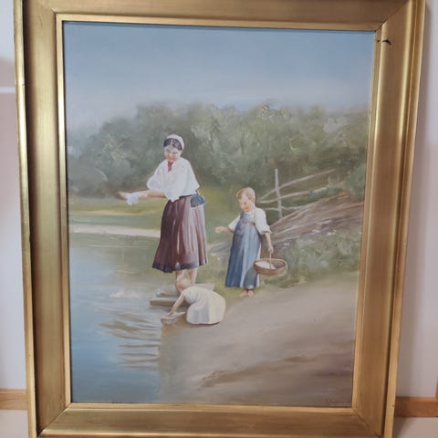 K. J:n Pyykkipäivä. Työn korkeus on 38 cm ja leveys 49 cm. Kehys 49 X 60 cm.
