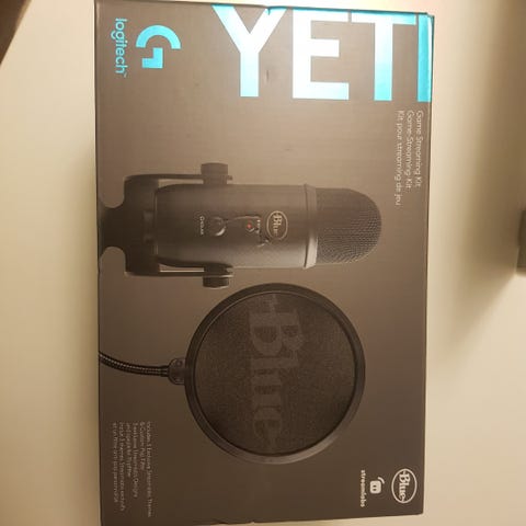 Blue Yeti USB-mikrofoni musta, sisältää pop-suodattimen ja jalustan.