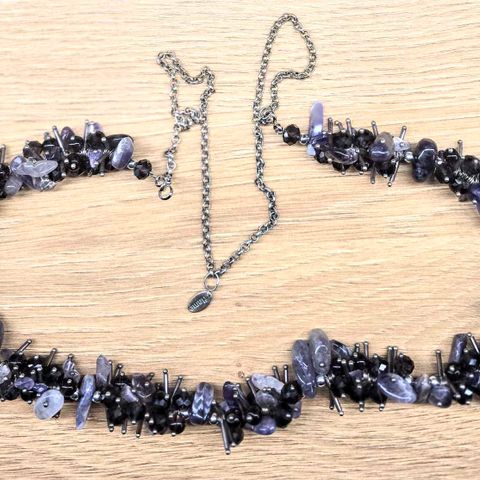 Ametistihelmistä tehty 90 cm pitkä kaulakoru hopeisella renkaalla. Mukaan rasia. Käyttämätön. Postitus onnistuu.