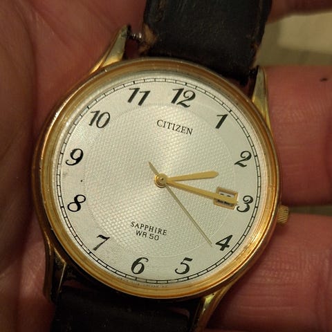 Citizen merkkinen rannekello mallia WR50 nahkaisella rannekkeella. Huom! Ei sisällä paristoa.