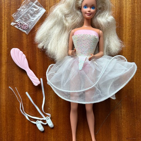 Nätti Mattel barbie , hyvässä ,leikityssä kunnossa. Iltapuku myös Mattelin valmistama.