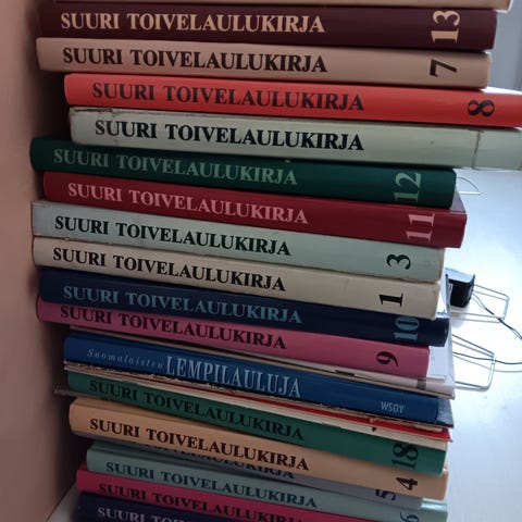 Suuri Toivelaulukirja 18 kpl, osat 1-18; a' 25 euroa/kpl eli yhteensä 450 euroa.