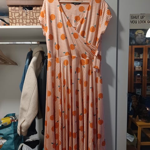 Romanttinen ”Peruna”tyylikäs oranssi paita, vuorillinen ,pitkät hihat, pudonnut olkapää toisella puolella, uudenveroinen ,koko XL-XXL,kai-kai 62 cm,olk.-helm.50 cm.