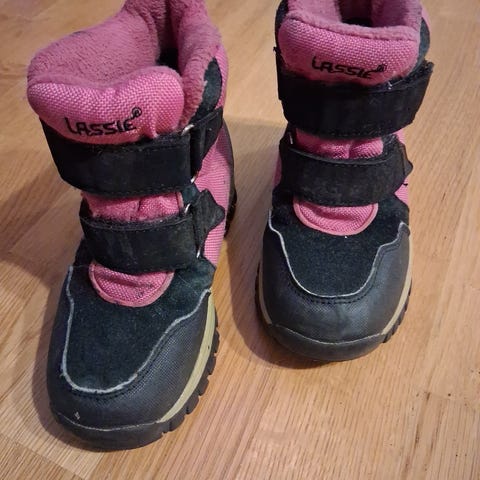 Sinisen väriset Lassie merkkiset kengät. Kenkien koko 27 ja niissä tarrakiinnitys.